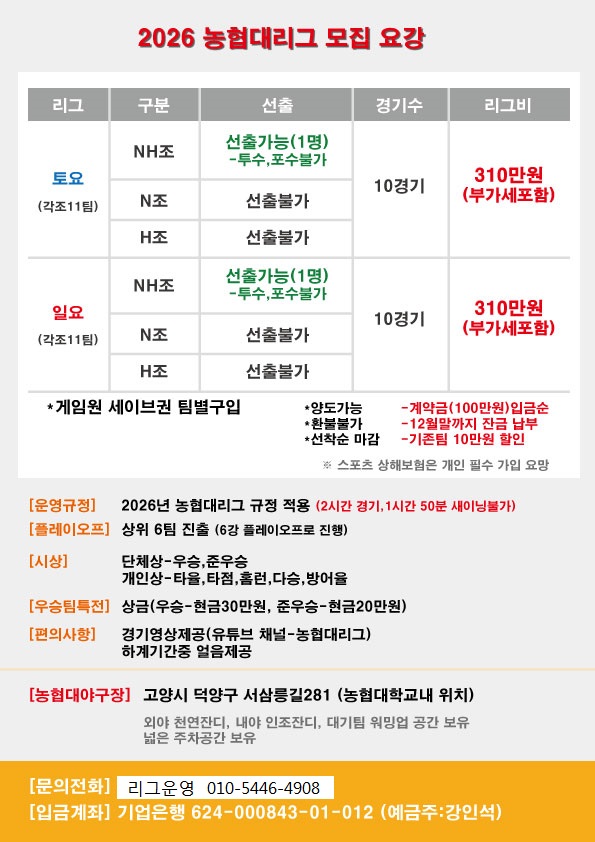 ⚾ 2026년 농협대리그 참가팀 모집 공고
